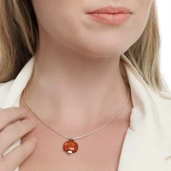 A beautiful flame coloured amber pendant smoothed and polished to display the warm hues of Autumn. Size: 23x16mm (inc loop). Includes: 40cm snake chain.