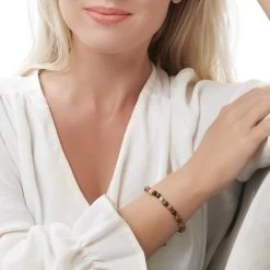 Beautifully smooth beads of tourmaline showcase honeyed pink/green hues. Tourmaline is said to bring inspiration, happiness and self confidence. Finished with a matching bead and silver star charm.