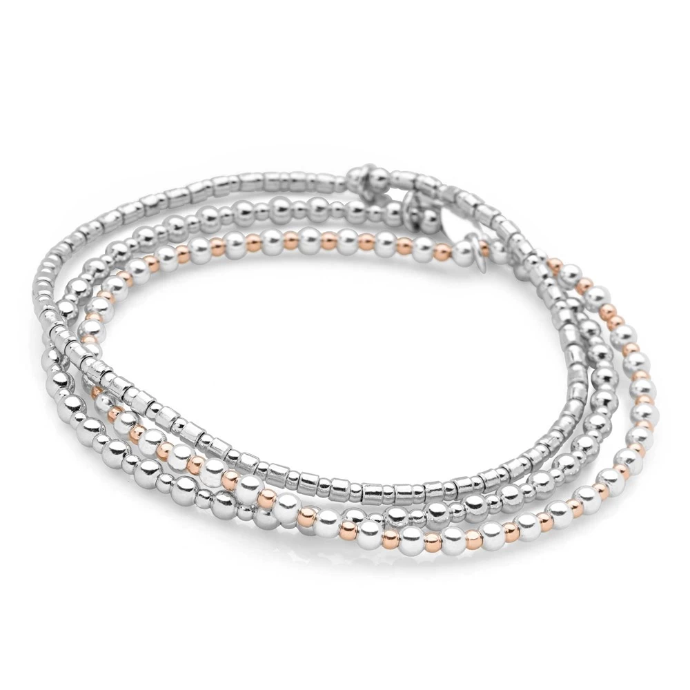 Hand crafted with high quality silver and threaded with comfortable elastic; these sets are the perfect starter stack.