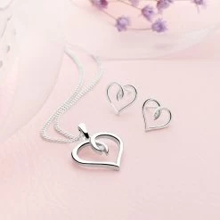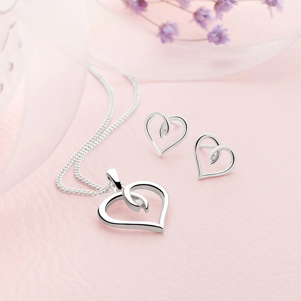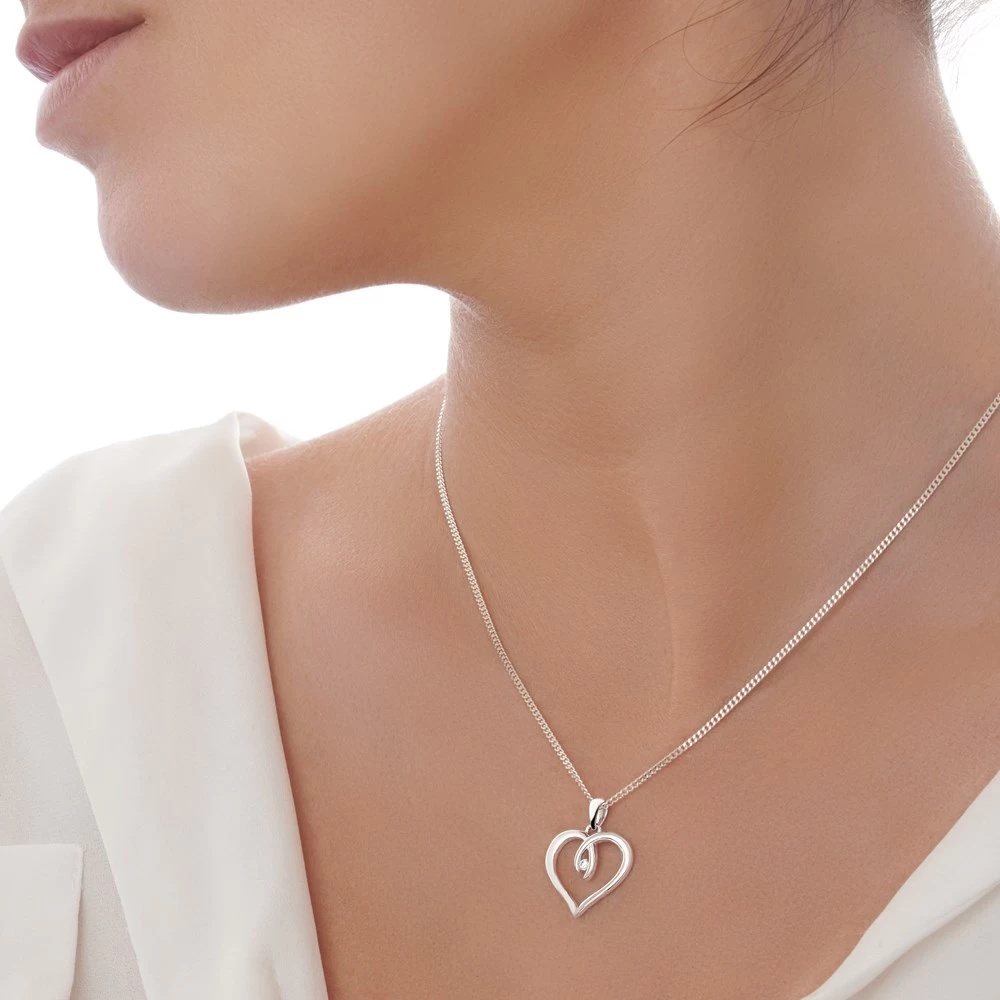 This sleek silver heart clasps onto a single cubic zirconia for subtle sparkle.