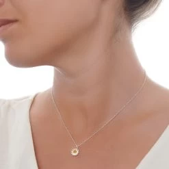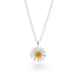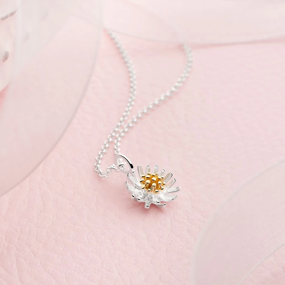 This highly detailed daisy with a golden center, gently swings from a classic chain, adding a subtle breeze of Spring to any look.