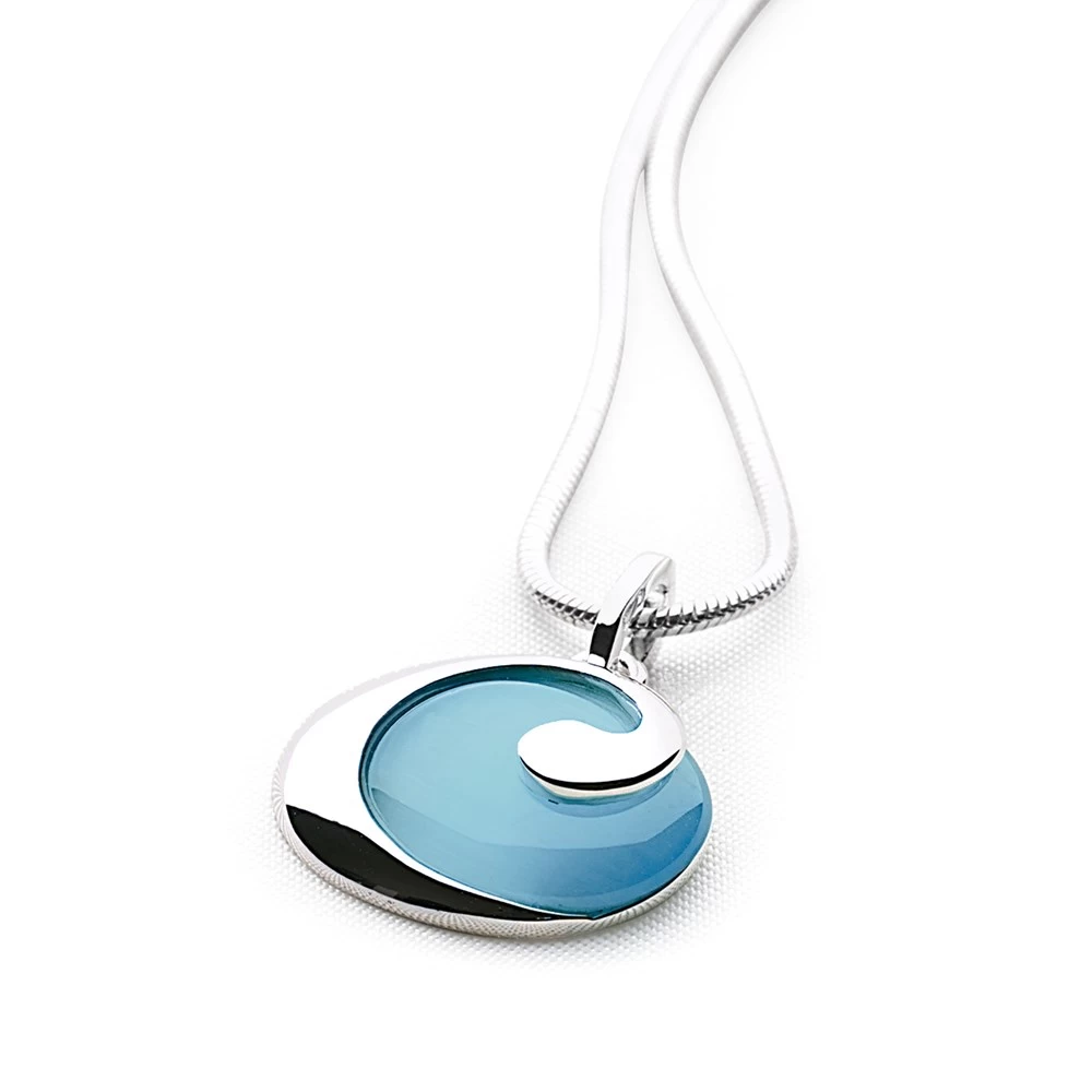 A breaking wave of silver, that rippling blue cat’s eye – how to add a slice of paradise to your look. Add matching tankini poolside, or faded denim for weekends. Size: 21x18mm (inc loop). Includes: 40cm snake chain. Longer chains available.