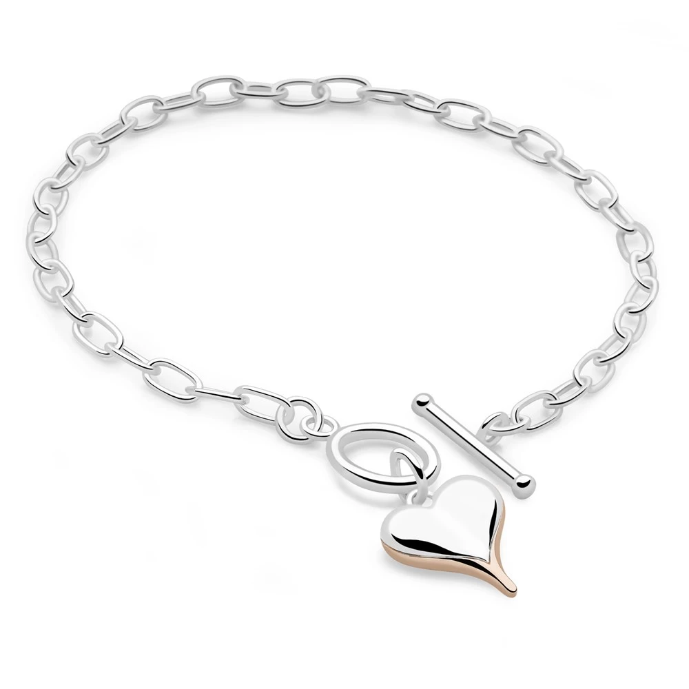 The pinnacle of romance this heavyweight silver heart has a rose gold running down each side finishing into an elongated point. A romantic fusion of silver with rose gold accents.
