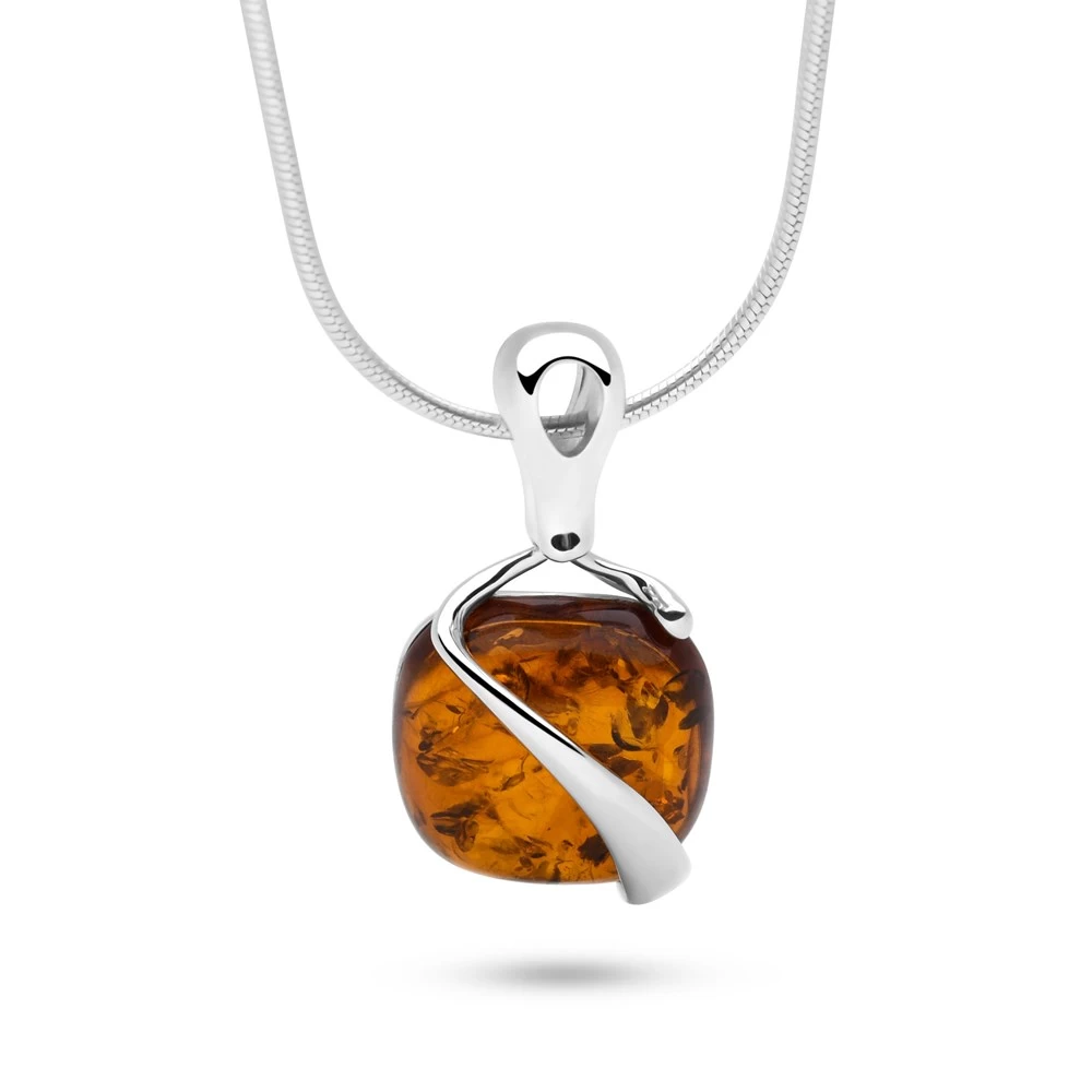 Love that bold silver swoosh over that fabulous cushion of amber, injecting cool energy into those firelight tones. A designer piece that works with pared down separates to let it shine. Size: 33x16mm. Includes: 40cm snake chain.