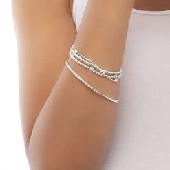 Fall in love forever with this classic set of three bracelets and bangle. Adorned with silver charms for a look that’s so pretty and easy to wear, these delicately beaded bracelets and twisted silver bangle are designed to elegantly frame your wrist. Enhance your jewellery collection with the different shapes and textures with this set.