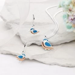 These beautiful birds gracefully stand proud with their blue enamel wings and rose gold plated chests.