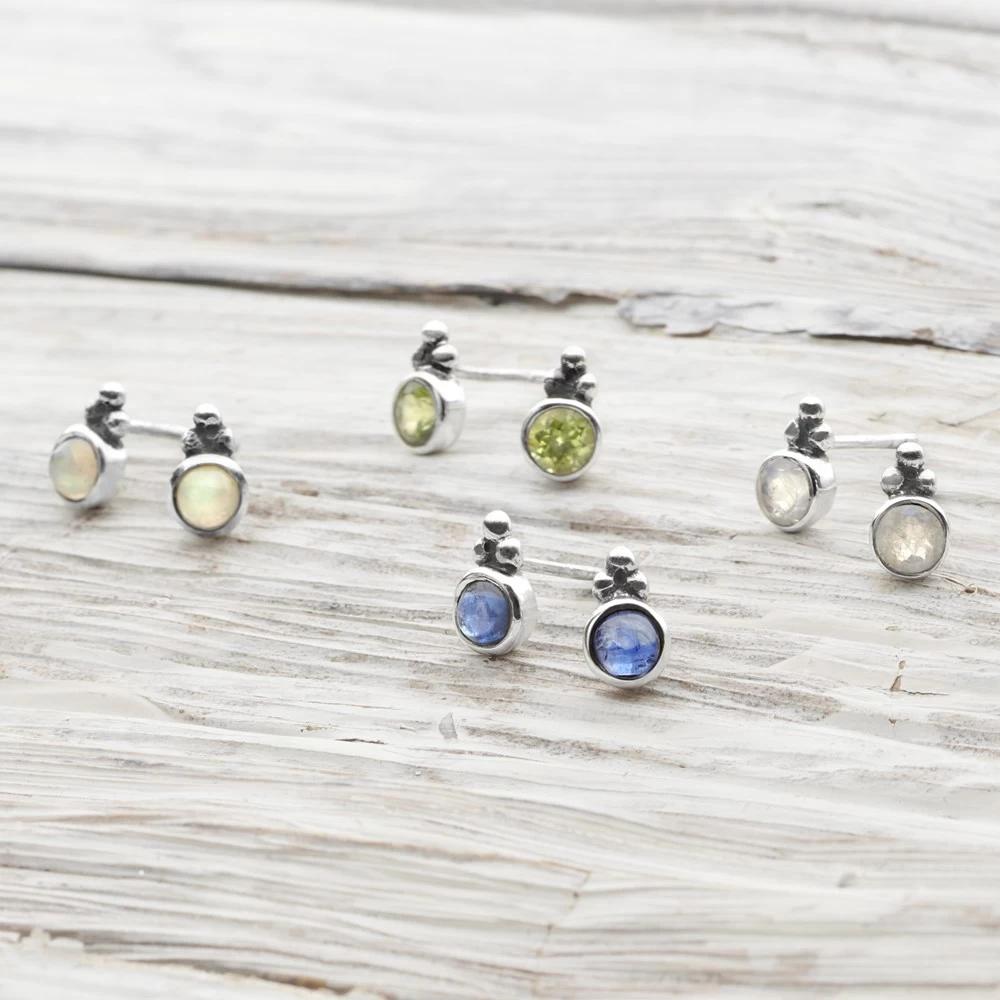 A glimmering gem of moonstone known for intuition, balance, and wishes, is held below delicate oxidised beading. Petite and charming, these studs are perfect for bringing sparkle to your everyday.