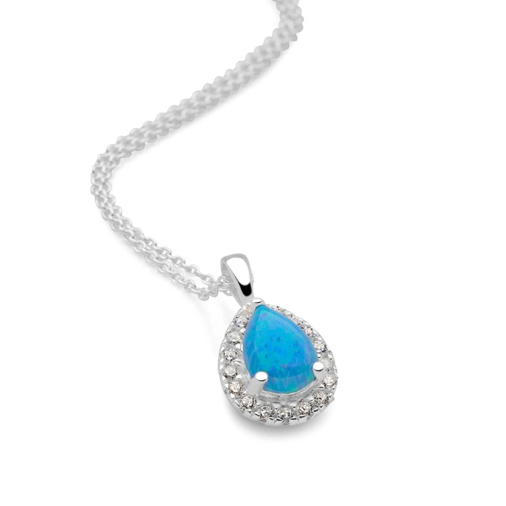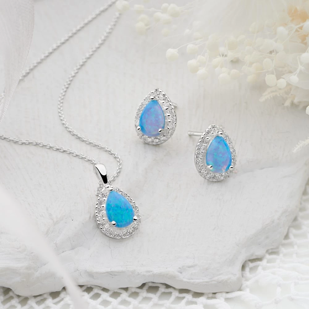 A shimmering faux opal is crafted in a seductive tear drop. Surrounded by cubic zirconia to create eye-catching sparkle, these studs are a stunning addition to your jewellery box.