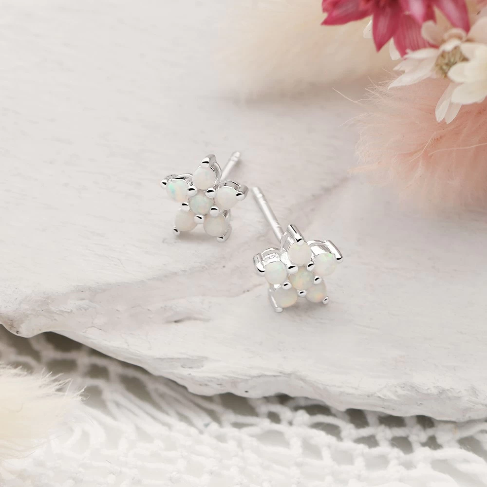 These small blossom studs shimmer with a warm, opal iridescence at the lobe. So pretty and so easy to mix and match with other earrings in your collection.