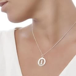 Pendant size: 25x19mm (inc hoop). mm. Includes 40cm curb chain. Longer chains available. Please note, once this pendant has been personalised it is non returnable.