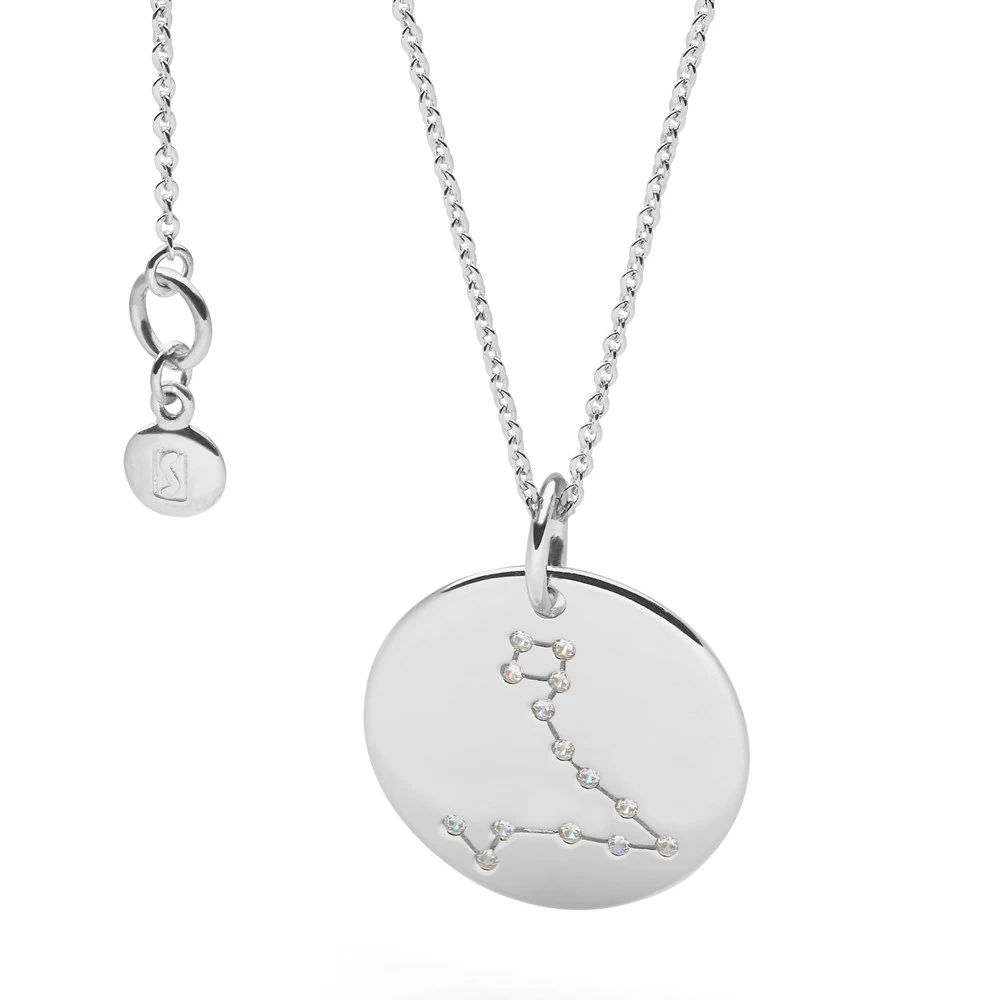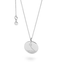 This gleaming round silver disc is embellished with the unique star constellation of the Pisces star sign. Size: 24x19mm (inc loop). Includes 70-75cm long curb chain (adjustable).