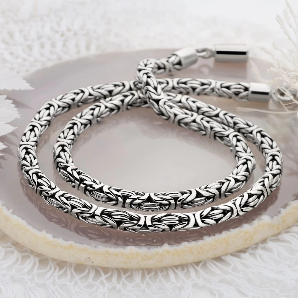 No jewels or gemstones are required to make this exotic chain design sparkle enough to set off any special outfit. Borobudur weave handcrafted in Bali. Width: 6mm. Length: 51cm (inc clasp).