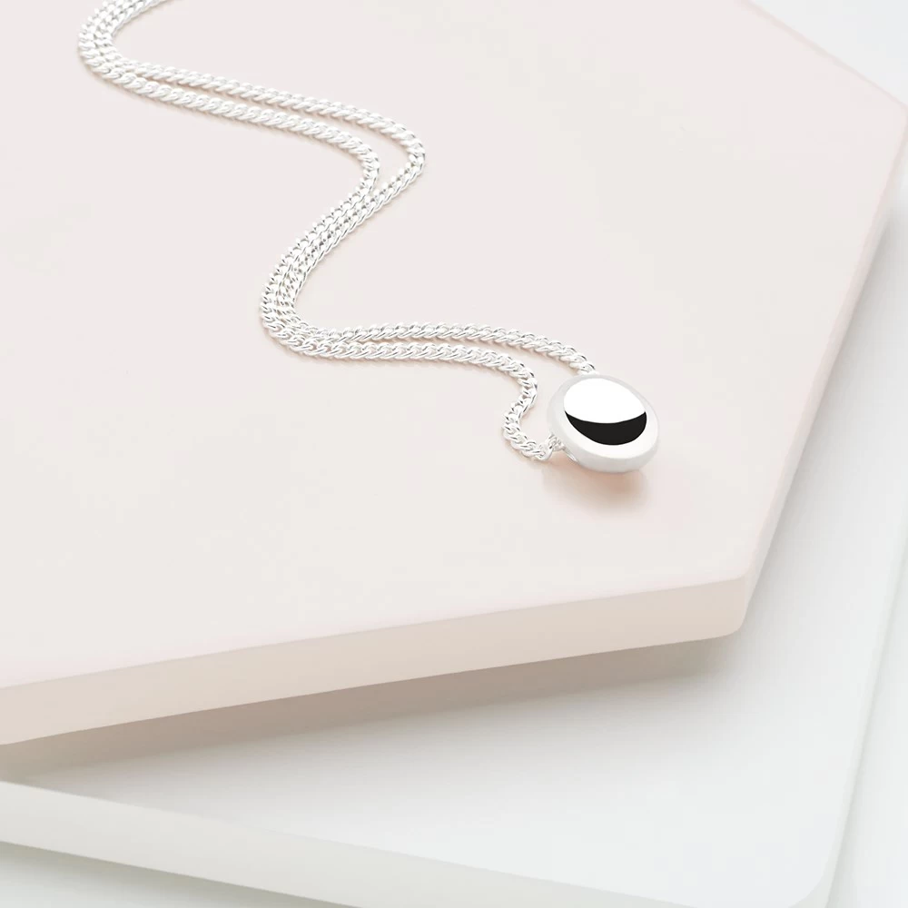 Simplicity at its most effective in the form of a cute pearl of solid silver that dangles delicately from a dainty chain. Size: 8x6mm. Includes 40cm curb chain. Longer chains available.