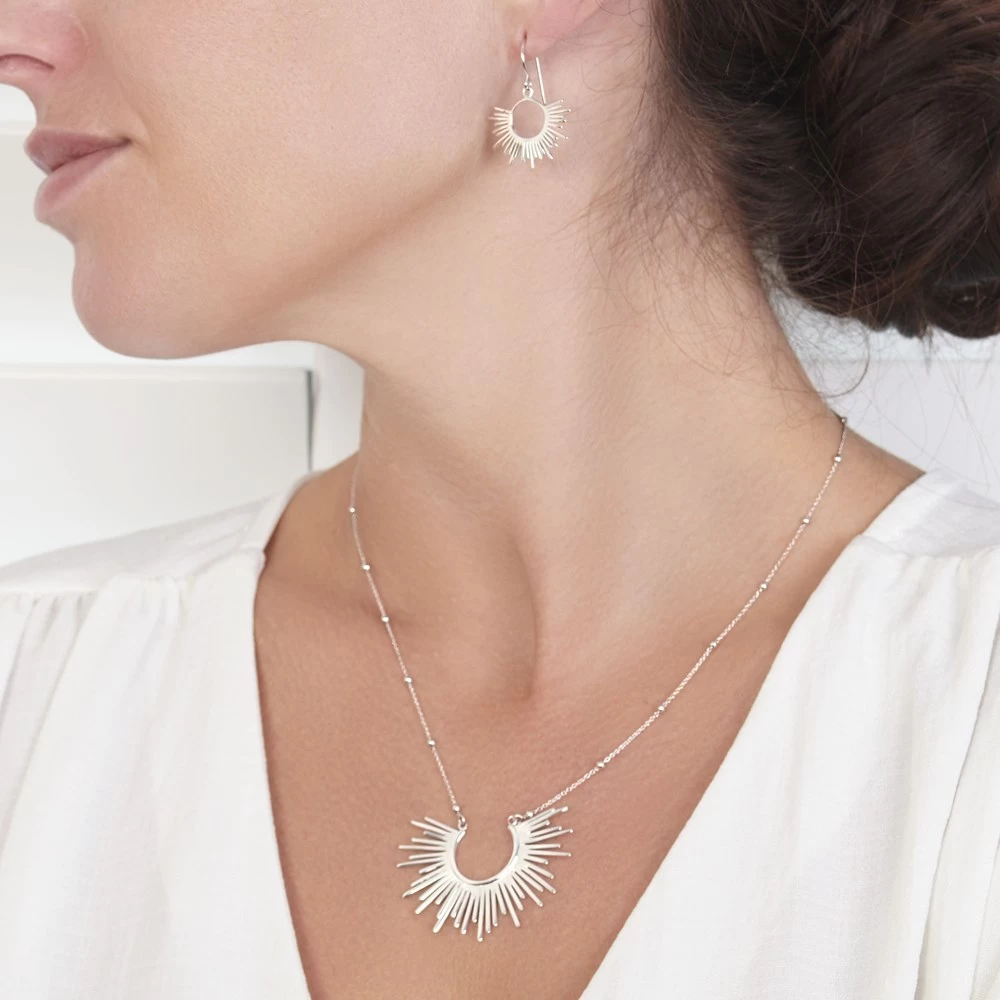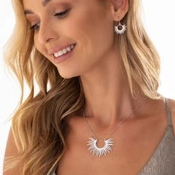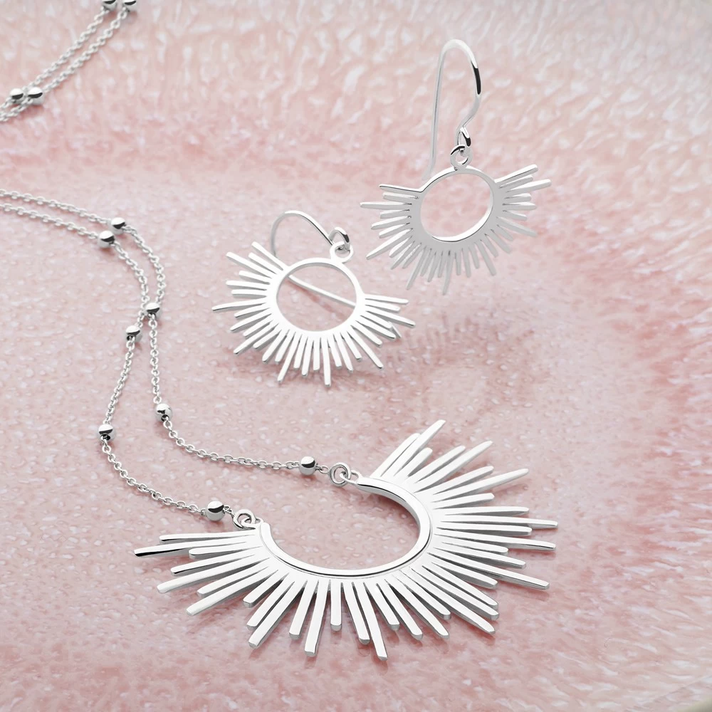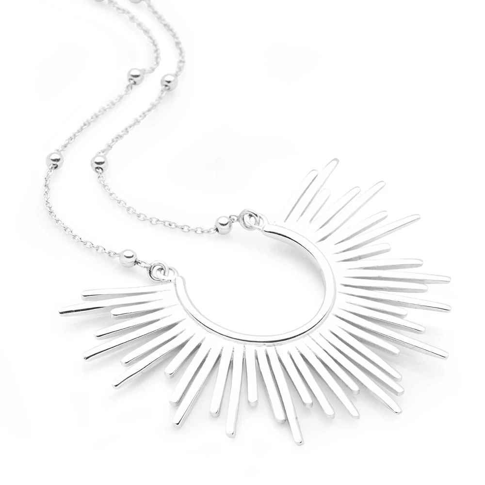 Shine bright with this modern rendition of a classic motif. This stunning necklace shines in sterling silver whilst giving a subtle nod to vintage jewellery. Size: 45x35mm. Length: 45-50cm (Adjustable).