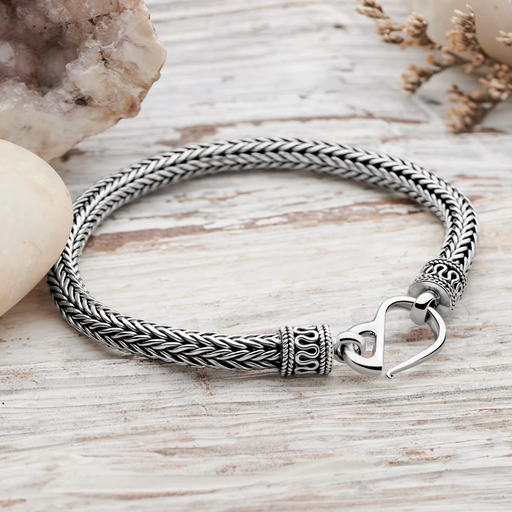 When you’re on to a good thing…have some more of it. The Yama Bracelet is a deliciously heavy silver bracelet for the eternally stylish. Width: 5mm. Length: 20cm (inc barrel clasp).